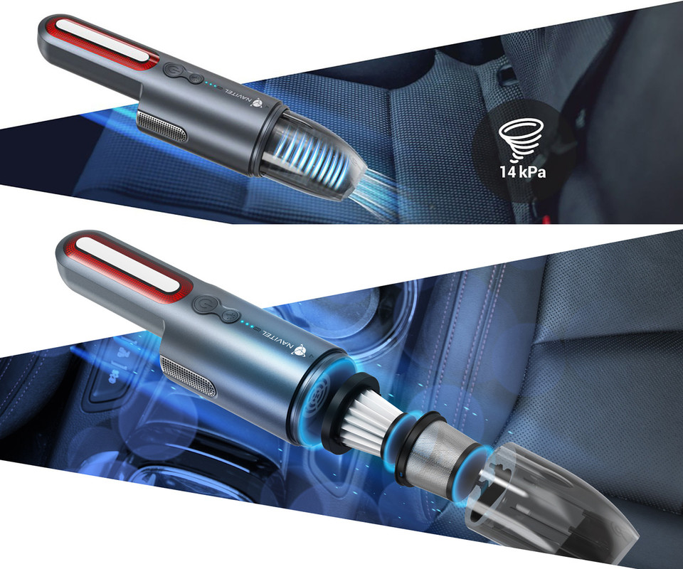 NAVITEL ročni sesalnik CL100 je opremljen z zmogljivim motorjem, ki zagotavlja izjemno sesalno moč do 14 kPa, kar omogoča globinsko čiščenje različnih površin. Ne glede na to, ali gre za odstranjevanje drobtin v avtomobilu ali prahu v vašem domu, ta sesalnik bo poskrbel za temeljito in učinkovito čiščenje. S svojo kompaktno zasnovo in brezžičnim delovanjem je idealen za hitro uporabo, ne da bi pri tem omejeval vašo gibljivost. Poleg tega je opremljen s HEPA filtracijo, ki zadrži fine delce in poskrbi za čistejši zrak v vašem okolju.