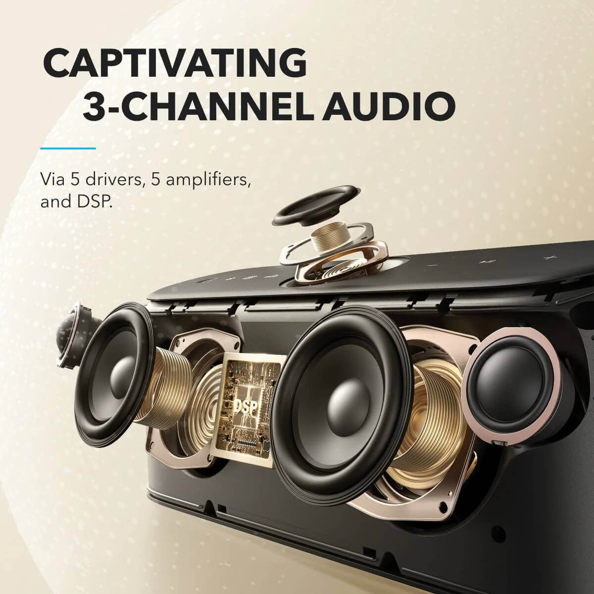 Uživajte v izjemni kakovosti zvoka z Anker prenosnim bluetooth zvočnikom Motion X600. Zvočnik ponuja zvok visoke ločljivosti, ki razkriva skrite nianse v vsaki pesmi. S široko frekvenco 40 kHz boste lahko slišali vsako podrobnost, ki jo ponuja vaša glasba. Poleg tega zvočnik omogoča prilagodljiv EQ, ki vam omogoča, da z enim potezom prsta poiščete zvok, ki vam najbolj ustreza. Ta funkcija zagotavlja, da lahko prilagodite zvočno izkušnjo svojim osebnim preferencam.