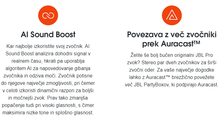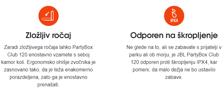 JBL partybox 120 BLACK prinaša tudi vizualno doživetje z vgrajenimi svetlobnimi efekti, ki se sinhronizirajo z glasbo. Ti efekti dodajo dodatno dimenzijo vaši zabavi, saj ustvarjajo dinamično svetlobno predstavo, ki bo navdušila vse prisotne. Svetlobne efekte lahko prilagodite glede na vaše želje in razpoloženje, kar omogoča ustvarjanje popolne atmosfere za vsak dogodek. Zvočnik je zasnovan tako, da je enostaven za uporabo, kar vam omogoča, da se osredotočite na uživanje v glasbi in družbi.