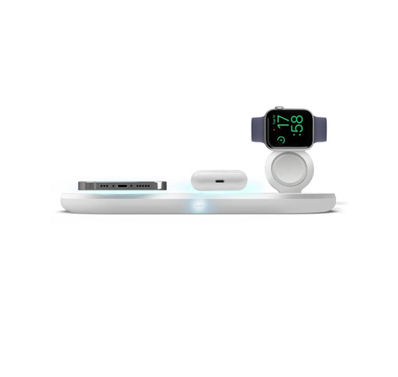 Odkrijte udobje brezžičnega polnjenja z našim naprednim polnilcem, ki omogoča polnjenje treh naprav hkrati. Zasnovan je za vse pametne telefone, ki podpirajo tehnologijo Qi, vključno z Android in iPhone modeli. Poleg tega lahko polnite tudi slušalke Airpods/Airpods Pro ter Apple Watch, vendar je potrebno uporabiti originalni magnetni polnilec za uro. S svojo elegantno belo barvo se bo brezžični polnilec odlično podal na vsako mizo ali nočno omarico, hkrati pa bo poskrbel za urejenost in funkcionalnost vašega prostora.