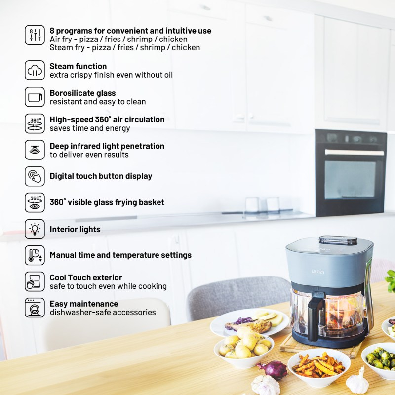Cvrtnik na vroč zrak Lauben Glass&SteamAir® Fryer 4500BG za zdravo cvrtje