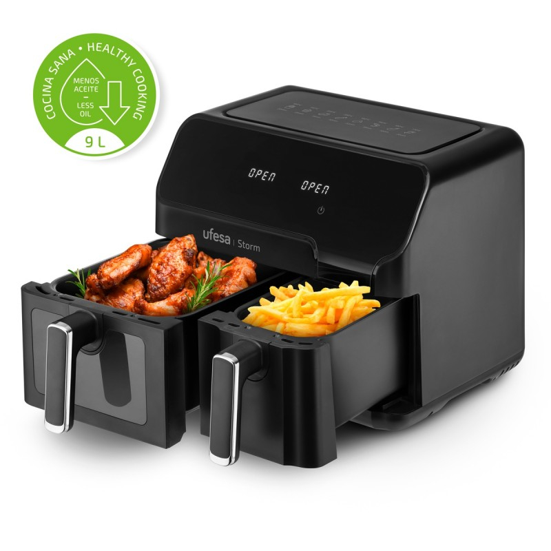 Zračni cvrtnik Ufesa Storm 2700W za hkratno kuhanje dveh različnih živil
