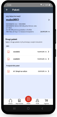 Enostavno zamenjaj svoj paket v aplikaciji Moj A1.