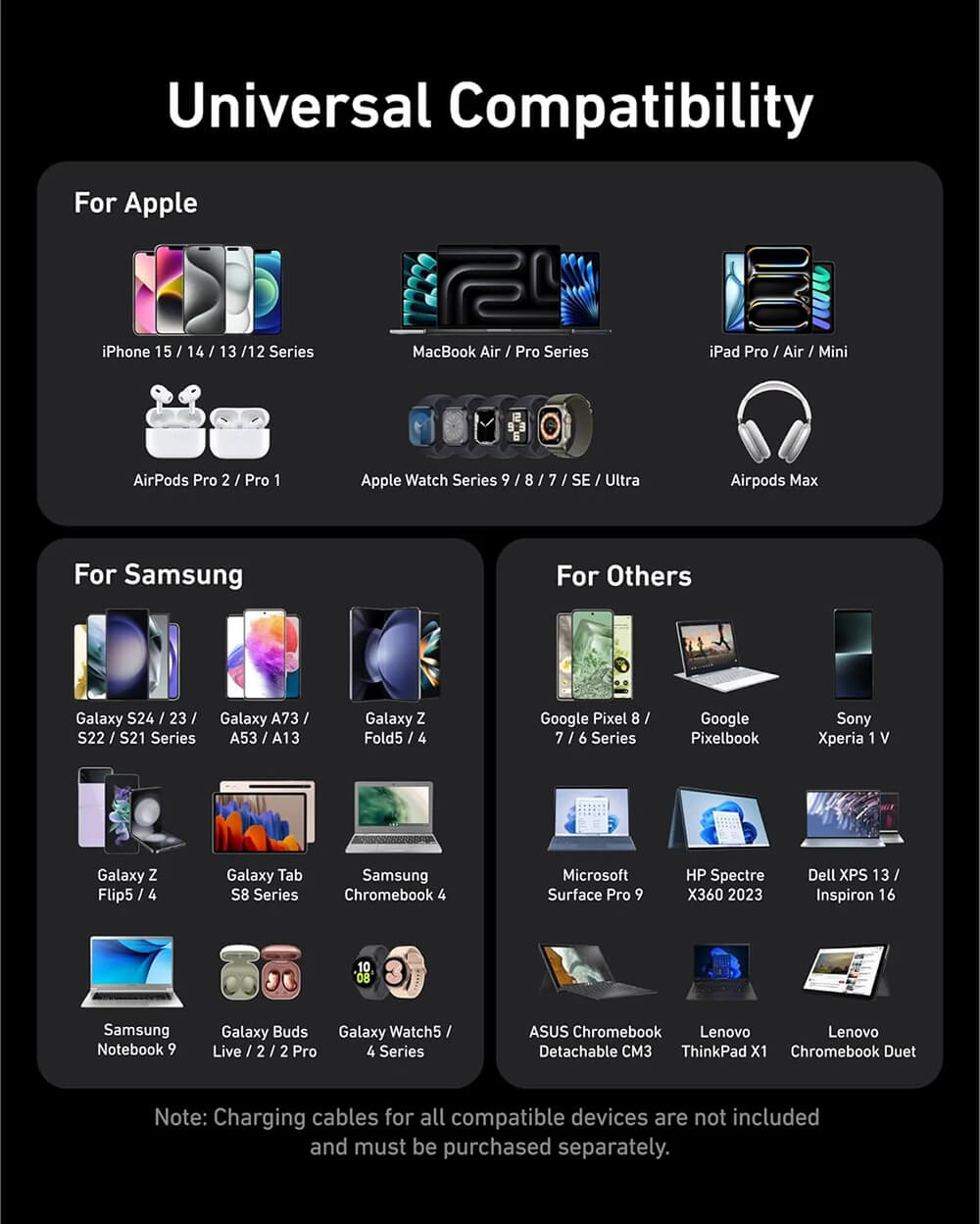 Anker Prime GaN polnilna postaja 200W model A2683 je opremljena z napredno zaščito MultiProtect in ActiveShield 3.0, ki zagotavlja varnost vaših naprav med polnjenjem. S podporo za 100 W na vsakem USB-C priključku lahko dve napravi, kot sta 14-palčna MacBook Pro, napolnite do 50 % v samo 28 minutah. Ta polnilna postaja je zasnovana za hitro polnjenje prenosnikov, pametnih telefonov in drugih naprav, ne glede na znamko. Poleg tega je združljiva z napravami Apple, Samsung in mnogimi drugimi, kar omogoča univerzalno uporabo.