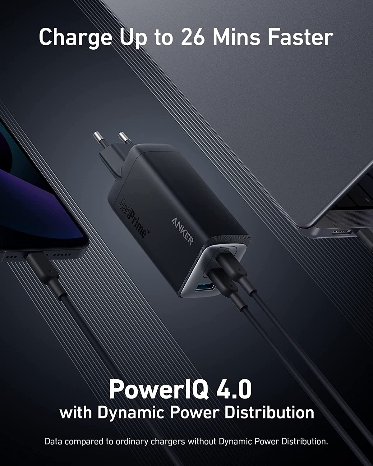 Stenski polnilec Anker 737 GaNPrime 120W je opremljen z ekskluzivno tehnologijo PowerIQ 4.0, ki omogoča dinamično porazdelitev moči. Ta tehnologija zaznava potrebe po energiji povezanih naprav in samodejno prilagaja moč, kar zagotavlja hitrejše in učinkovitejše polnjenje. S tem polnilcem lahko napajate tri naprave hkrati, kar je idealno za tiste, ki imajo več elektronskih naprav. Poleg tega je polnilec opremljen z napredno zaščito ActiveShield 2.0, ki spremlja temperaturo več kot 3 milijonkrat na dan, kar zagotavlja varnost vaših naprav.