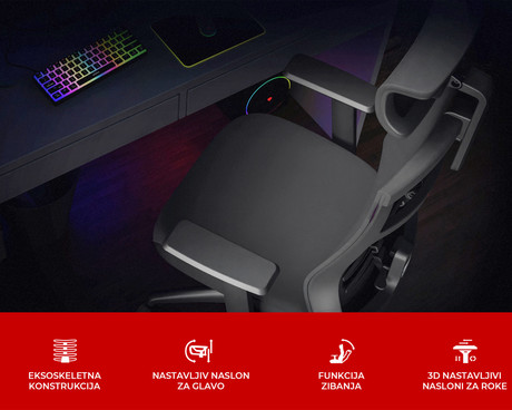 - Nastavljiv naslon za glavo in 3D naslonjala za roke