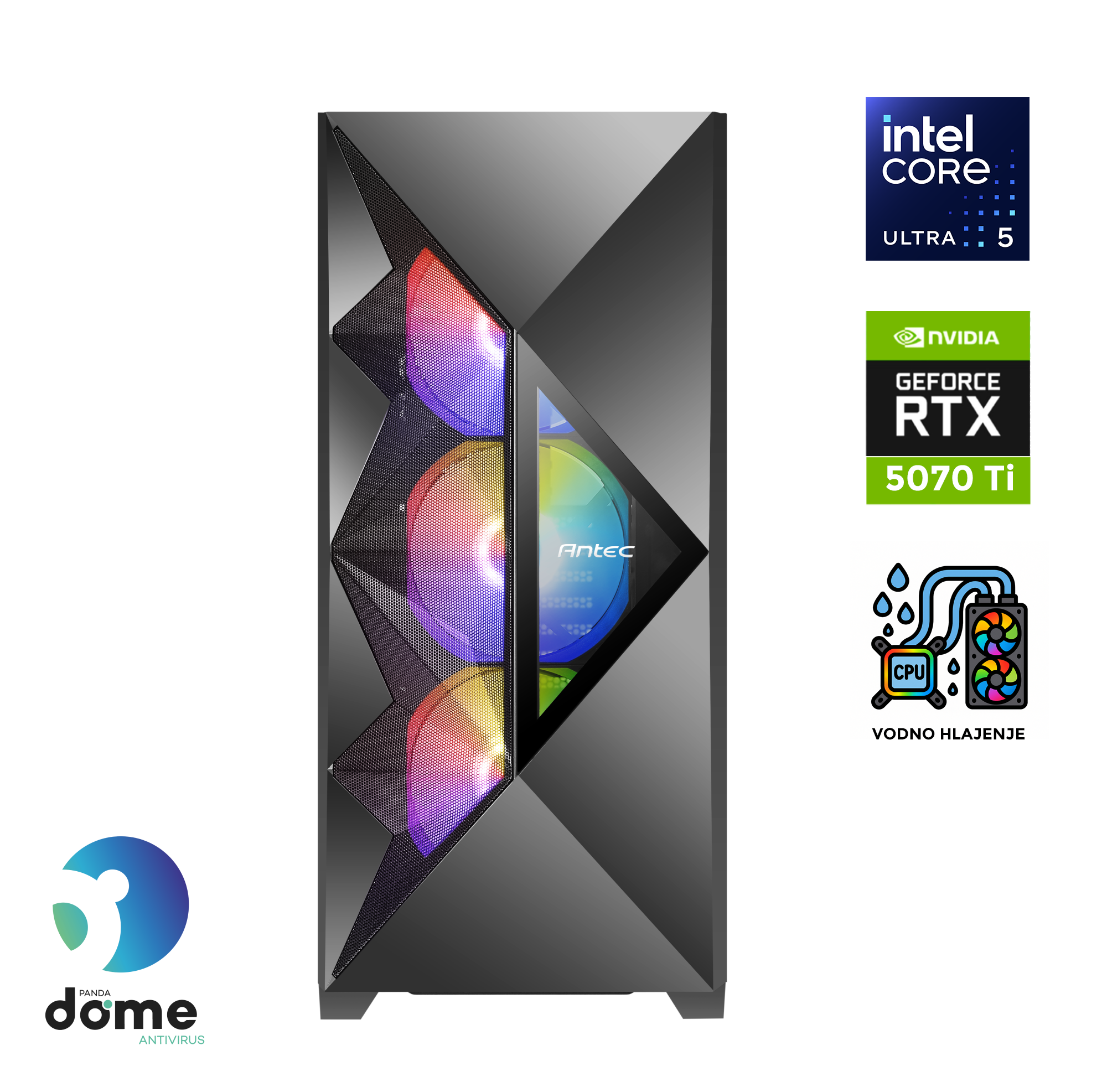 Ta računalnik je zasnovan za igričarje, ki zahtevajo najboljše. Opremljen z Intel Core Ultra 5-245KF procesorjem, nudi izjemno zmogljivost in hitrost, ki jo potrebujete za najzahtevnejše igre. Vodno hlajenje zagotavlja optimalno temperaturo tudi med dolgimi igralnimi seansami. S 32 GB DDR5 pomnilnika in 2 TB M.2 NVMe SSD diskom, boste imeli dovolj prostora in hitrosti za vse vaše igre in aplikacije. Grafična kartica Nvidia GeForce RTX 5070 Ti prinaša realistično grafiko in gladko igranje, kar vam omogoča, da se popolnoma potopite v svet iger.