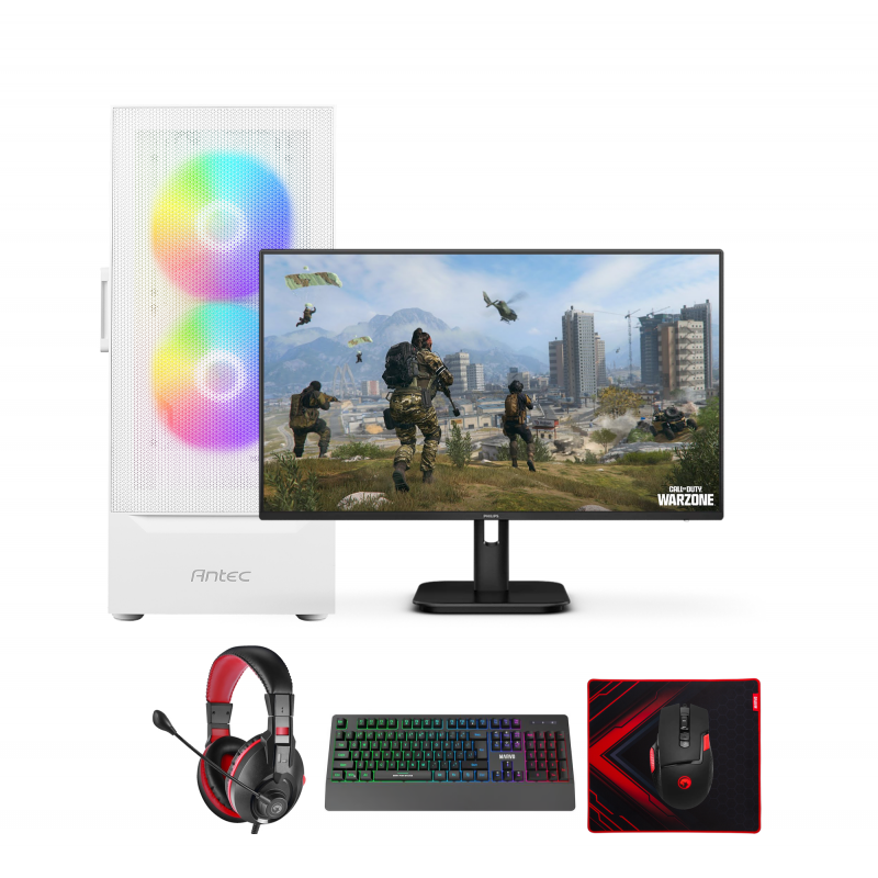 Računalniški komplet ponuja vrhunsko igričarsko izkušnjo z najnovejšimi tehnologijami. Zračno hlajenje zagotavlja optimalno temperaturo sistema, kar podaljšuje življenjsko dobo komponent. V kompletu prejmete tudi monitor Philips 24E1N1100A, ki omogoča jasen prikaz in živahne barve, ter komplet miške, tipkovnice, slušalk in podloge Marvo, ki dopolnjujejo vašo igričarsko postavitev. Operacijski sistem Windows Home 11 je prednameščen, kar omogoča takojšen začetek uporabe. S tem računalniškim kompletom boste pripravljeni na vse izzive, ki jih prinašajo sodobne igre.