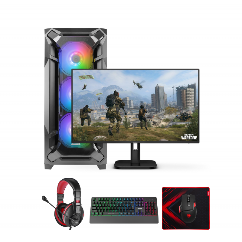 Ta računalniški komplet je zasnovan za igričarje, ki iščejo vrhunsko zmogljivost in zanesljivost. Opremljen z Intel Core i5-14400F procesorjem in Nvidia GeForce RTX 5050 grafično kartico, omogoča tekoče igranje najnovejših iger pri visokih nastavitvah. S 16 GB DDR5 pomnilnika in 1 TB M.2 NVMe SSD diskom zagotavlja hitro nalaganje iger in aplikacij. Prednameščen operacijski sistem Windows 11 Home poskrbi za sodobno uporabniško izkušnjo. Komplet vključuje tudi monitor in dodatno opremo, kar omogoča takojšnjo uporabo brez dodatnih nakupov.