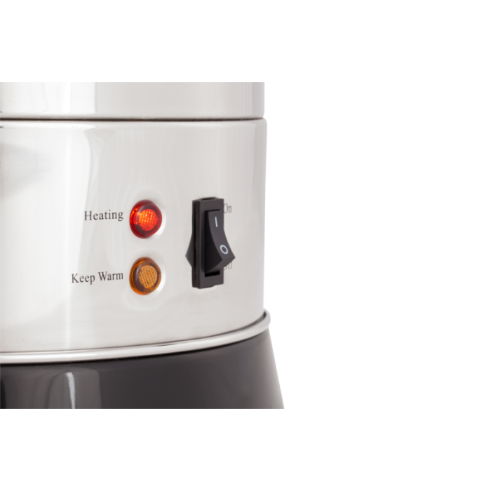 Električni vrelnik vode Camry CR1267 je zasnovan za vse, ki potrebujejo zanesljivo in hitro rešitev za segrevanje vode. Izdelan iz kakovostnega nerjavečega jekla, omogoča dolgotrajno uporabo in enostavno vzdrževanje. S kapaciteto 8,8 litrov je idealen za večje dogodke, kot so poslovna srečanja ali družabni dogodki. Zahvaljujoč toplotno odpornim ročajem in pipi je uporaba povsem varna. Regulacija temperature od 30 do 100 stopinj Celzija omogoča prilagoditev različnim potrebam, kar zagotavlja optimalno uporabniško izkušnjo.