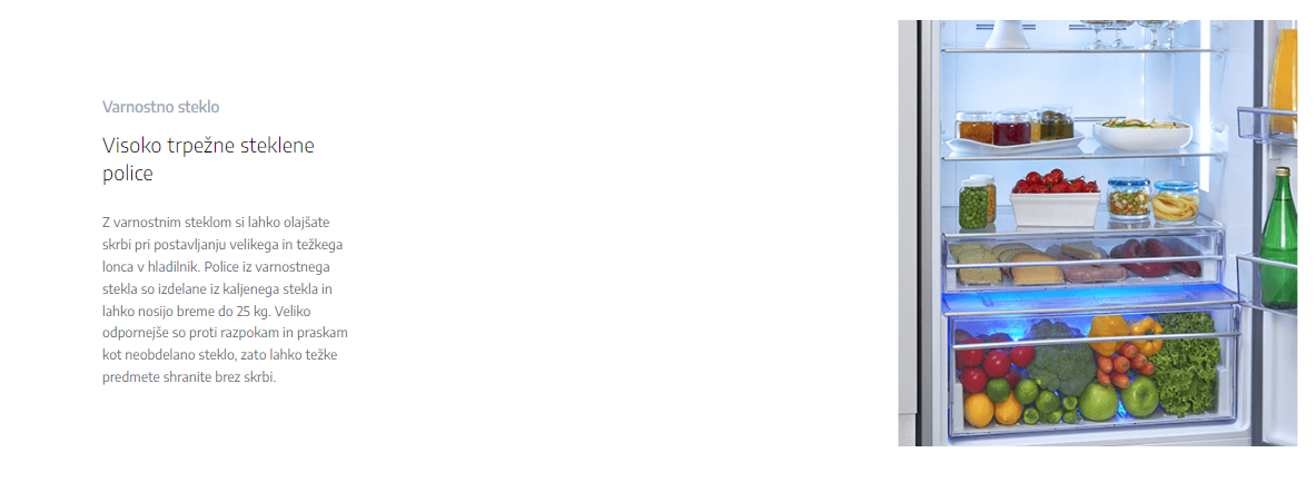 Hladilnik se ponaša z elegantno obliko, ki se brez težav prilega v vsako kuhinjo. Njegova moderna zasnova ne le izboljša estetiko prostora, temveč tudi zagotavlja funkcionalnost. S svojo nevtralno barvo se zlahka ujema z različnimi dekorativnimi stili. Poleg tega je zasnovan tako, da je enostaven za uporabo, kar pomeni, da boste lahko hitro in učinkovito dostopali do vseh svojih živil. Ta hladilnik je prava izbira za tiste, ki cenijo kombinacijo stila in praktičnosti.