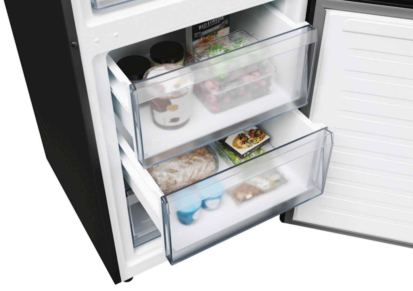 Hladilnik je opremljen z LED osvetlitvijo, ki omogoča jasen pregled nad vsebino hladilnika, ne glede na čas dneva. Ta energetsko učinkovita osvetlitev ne le izboljša vidljivost, ampak tudi prispeva k nižji porabi energije. Prostornina hladilnika je 235 litrov, kar zagotavlja dovolj prostora za shranjevanje vseh vaših najljubših živil. Poleg tega ima zamrzovalnik prostornino 120 litrov, kar ponuja dodatno kapaciteto za zamrznjene izdelke.