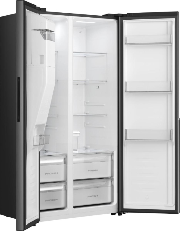 Eleganten dizajn hladilnika v črni barvi se odlično prilega vsaki kuhinji. Njegova prostorna notranjost omogoča enostavno organizacijo živil, medtem ko napredne funkcije, kot sta dozirnik vode in avtomat za led, poskrbijo za dodatno udobje. Hladilnik je zasnovan za tiste, ki cenijo tako estetiko kot funkcionalnost. Z energijskim razredom E in letno porabo energije 312 kWh, je tudi energetsko učinkovit, kar pripomore k zmanjšanju stroškov električne energije.