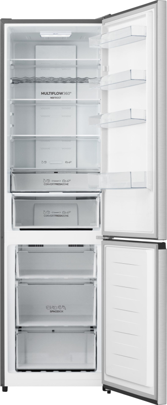 Eleganten in zmogljiv hladilnik prinaša dovršen dizajn v sivi barvi, ki se prilega vsakemu sodobnemu domu. Njegova premišljena notranjost omogoča optimalno izrabo prostora, kar olajša shranjevanje različnih vrst živil. S funkcijami, kot je avtomatsko odmrzovanje in predali s kontrolo vlage, poskrbi, da vaša zelenjava in sadje ostaneta sveža dlje časa. Poleg tega sistem enakomernega hlajenja zagotavlja, da je temperatura v hladilniku vedno idealna za shranjevanje hrane. Ta hladilnik je popolna izbira za vse, ki želijo združiti estetiko in funkcionalnost.