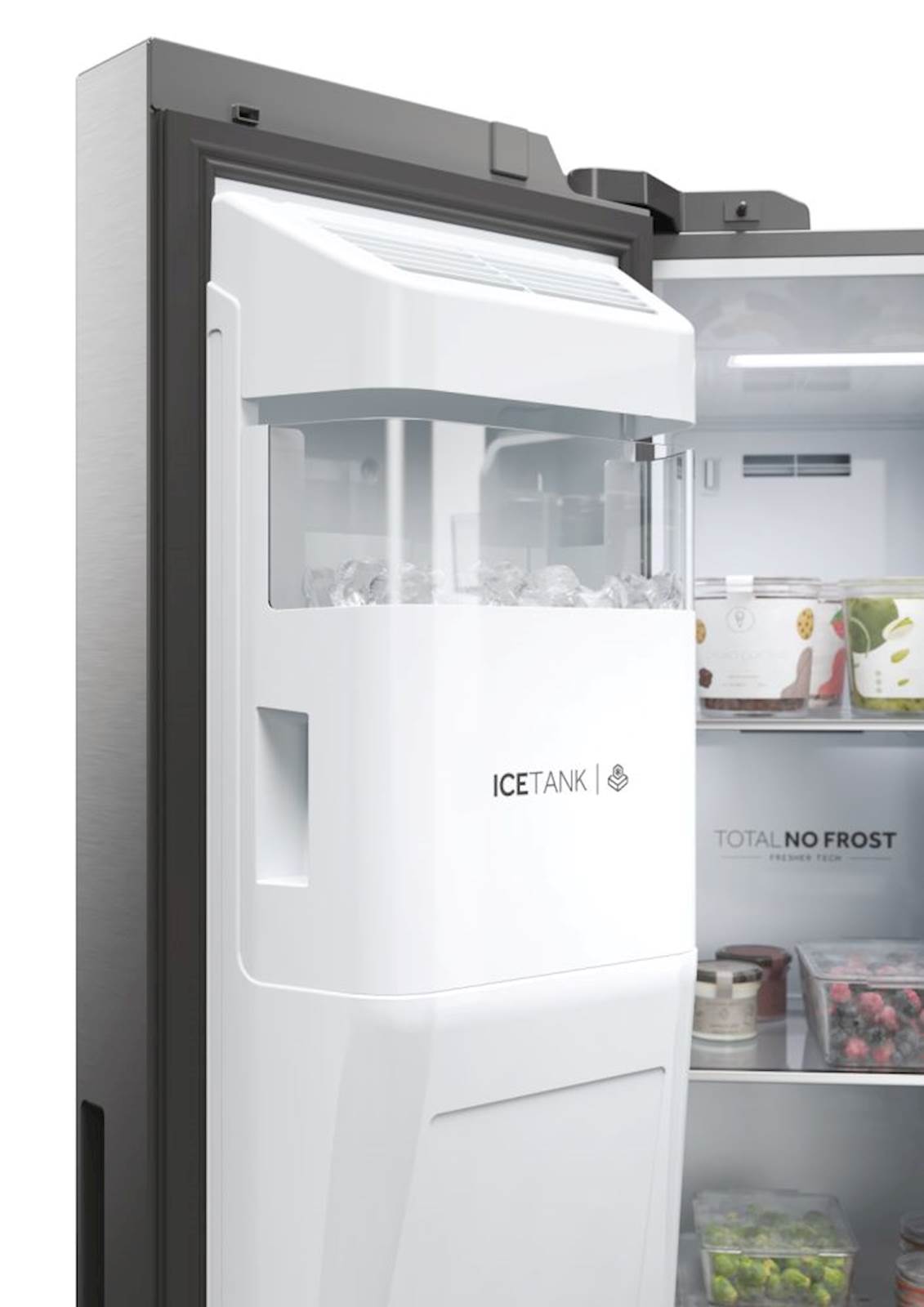 Haier hladilnik side by side HSW59F18EIMM vključuje samodejni dozirnik hladne vode in ledomat, kar omogoča enostaven dostop do sveže hladne vode in ledu. Ta funkcionalnost je še posebej priročna med vročimi poletnimi dnevi ali ob organizaciji družabnih dogodkov. Poleg tega predal Humidity Zone ohranja svežino vašega sadja in zelenjave dvakrat dlje, zahvaljujoč tehnologiji HCS, ki vzdržuje optimalno vlažnost.