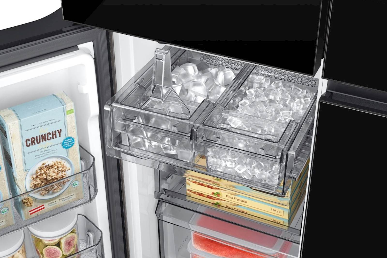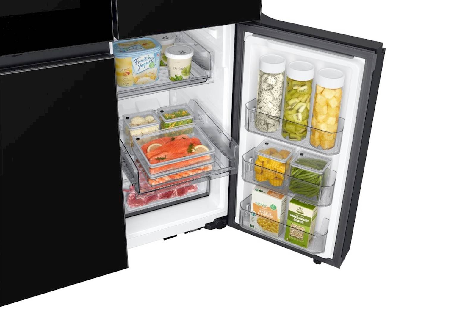 Odkrijte popolno kombinacijo elegance in funkcionalnosti s tem hladilnikom, ki je zasnovan za sodobne kuhinje. Njegova brezhibna črna steklena površina se odlično prilega vsakemu prostoru, medtem ko prozorna vrata See-Thru Door omogočajo vpogled v notranjost brez odpiranja. To ne le da zmanjšuje porabo energije, ampak tudi omogoča boljši pregled nad vsebino. Hladilnik je opremljen z naprednim sistemom hlajenja, ki zagotavlja enakomerno temperaturo v vseh delih, kar ohranja svežino vaših živil. S štirivratnim sistemom in prostorno notranjostjo je idealen za večje družine.