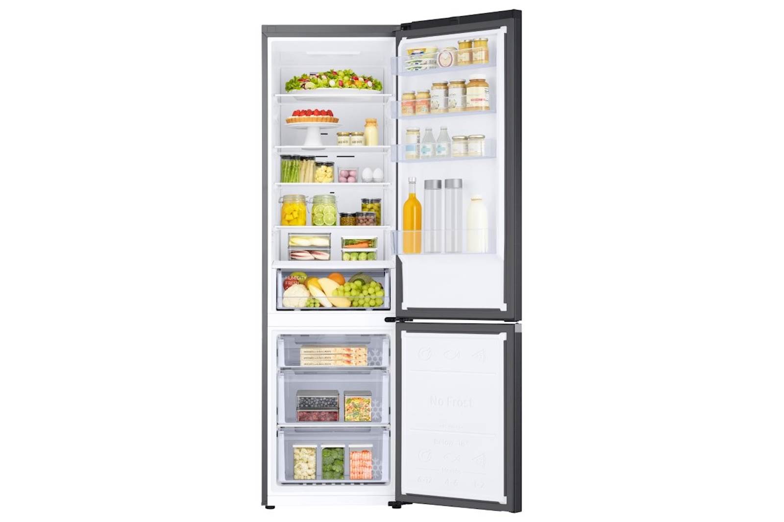 Hladilnik Samsung RB38C600DB1/EF je zasnovan za tiste, ki potrebujejo veliko prostora za shranjevanje živil. S skupno prostornino 390 litrov in tehnologijo SpaceMax omogoča več notranjega prostora brez povečanja zunanjih mer. To pomeni, da lahko shranite več hrane in pijače, ne da bi morali skrbeti za pomanjkanje prostora. Poleg tega je hladilnik opremljen z različnimi predali in policami, ki omogočajo organizirano shranjevanje živil. Njegova elegantna črna zasnova se odlično prilega vsakemu kuhinjskemu prostoru, kar ga naredi ne le funkcionalnega, ampak tudi estetsko privlačnega.
