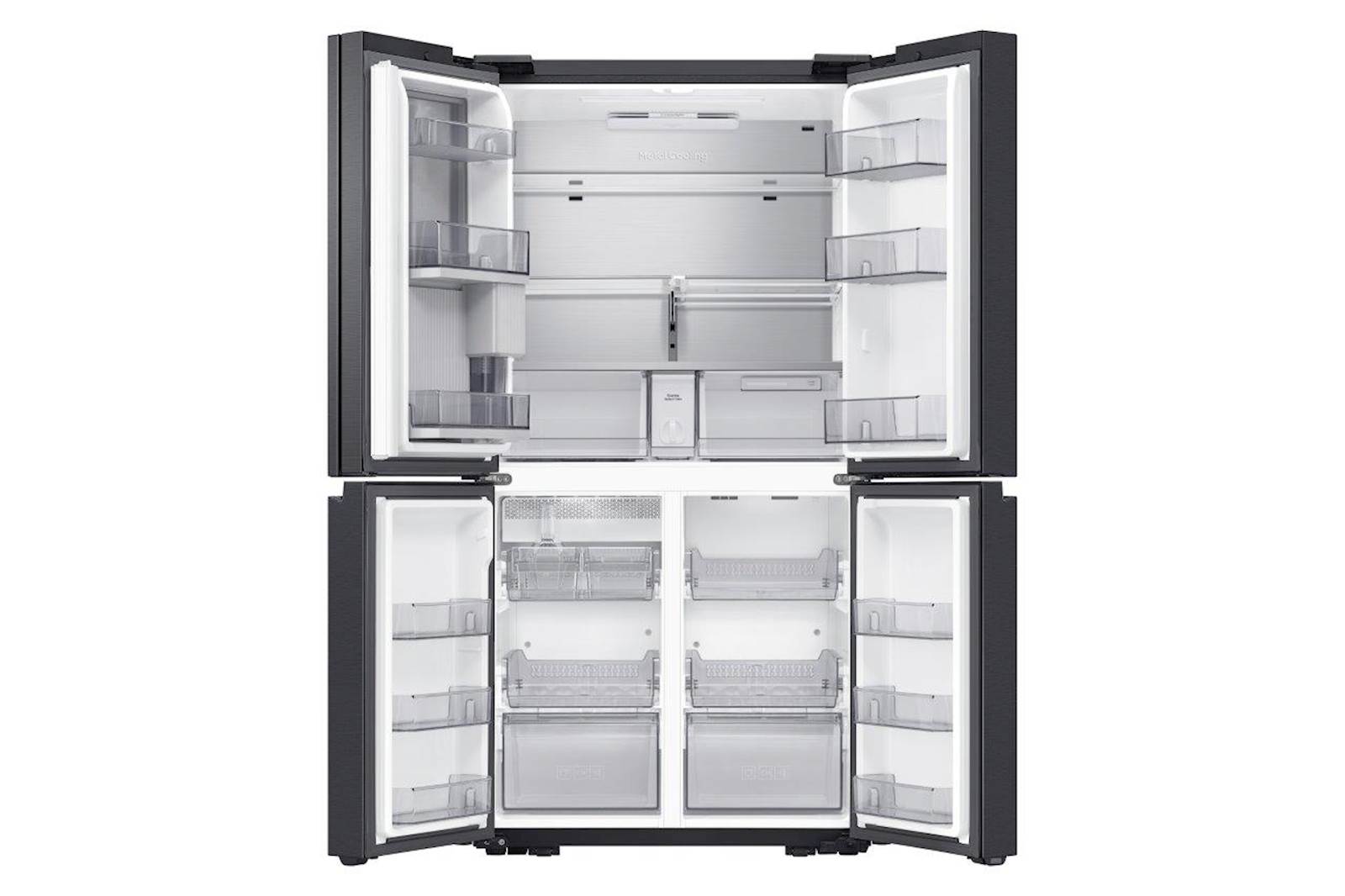 Samsung hladilnik RF65DG960EB1EO uporablja hlajenje s kovino, kar zagotavlja optimalno temperaturo v notranjosti hladilnika. Ta tehnologija ohranja živila sveža tudi ob pogostem odpiranju in zapiranju vrat. Kovinski hladilni kanal na zadnji steni pomaga hitro obnoviti izgubo toplote in daje hladilniku vrhunski videz. Poleg tega je enostaven za čiščenje, kar prispeva k dolgotrajni uporabi in estetski privlačnosti vašega kuhinjskega prostora.