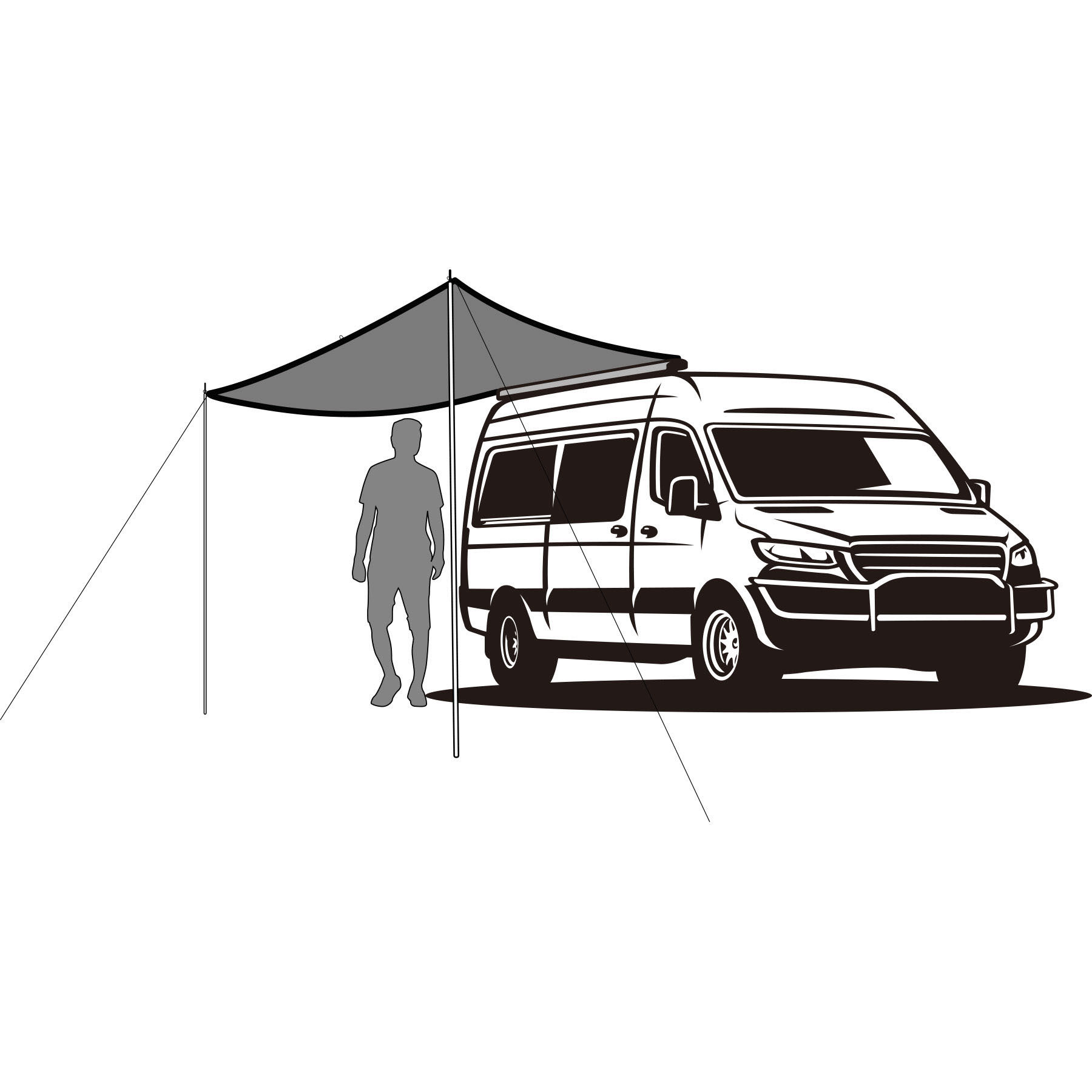 Udobnae sončna tenda iz sintetičnega materiala, odpornega na UV-žarke. Robovi ob straneh, z očesci. Enostavna namestitev na ograje počitniških prikolic, avtodomov ali kombijev. Primerna za markize Fiamma, Thule in Omnistor.
