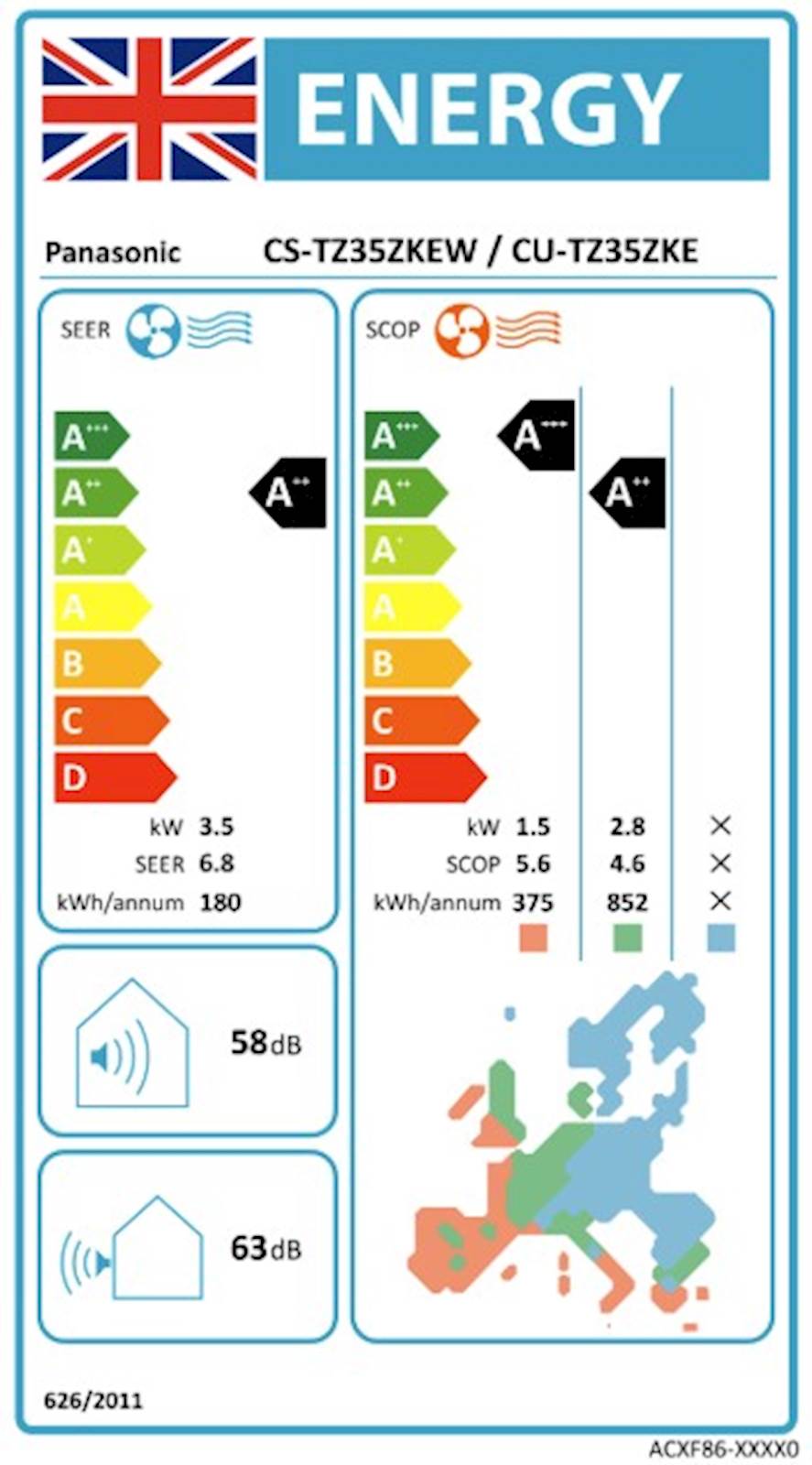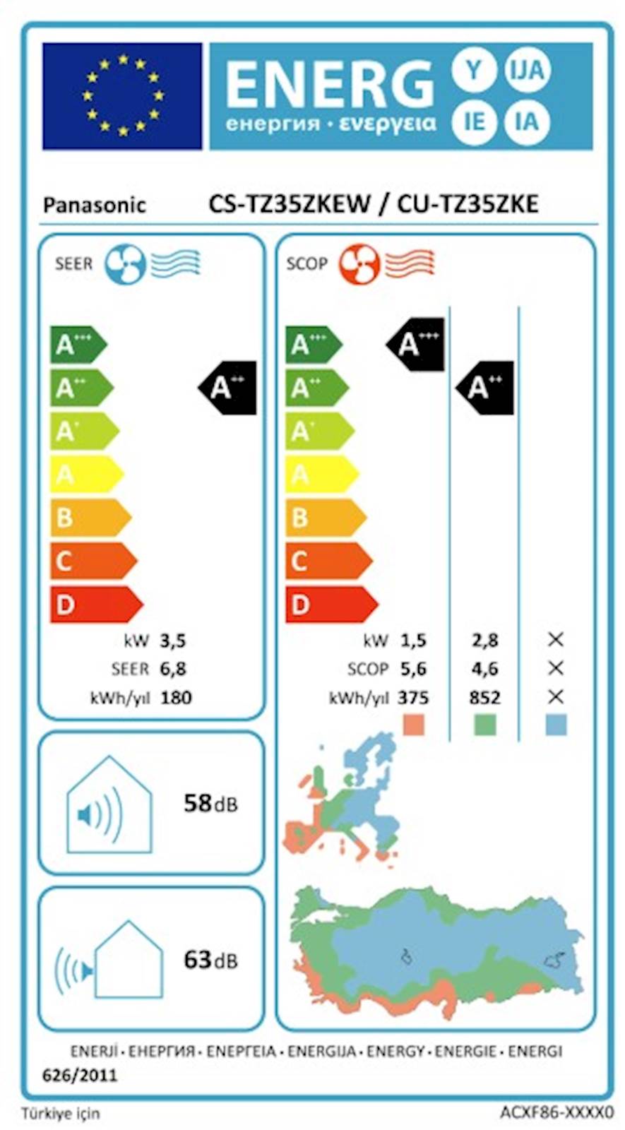 Klimatska naprava Panasonic CS/CU-TZ35ZKE + M z visoko energijsko učinkovitostjo