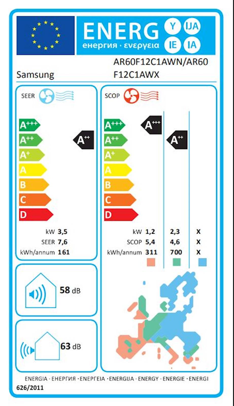 Klimatska naprava Samsung WindFree Comfort 3,5 kW komplet 2025: Energetska učinkovitost