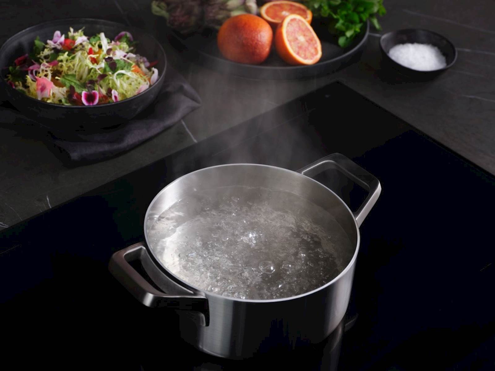 Indukcijska vgradna plošča AEG prinaša inovativno funkcijo DoubleBridge, ki omogoča združevanje dveh kuhališč na različnih področjih. Ta funkcija je idealna za uporabo kuhinjske posode različnih velikosti, saj usklajuje nastavitve temperature in časa, kar zagotavlja največjo prilagodljivost pri kuhanju. Poleg tega funkcija PowerBoost omogoča hitro zavretje večje količine vode, kar je odlično za hitre in učinkovite kuharske podvige. Vgrajena programska ura omogoča nastavitev časa kuhanja do ene ure in samodejno izklopi ploščo, ko čas poteče, kar zagotavlja natančne rezultate brez truda.