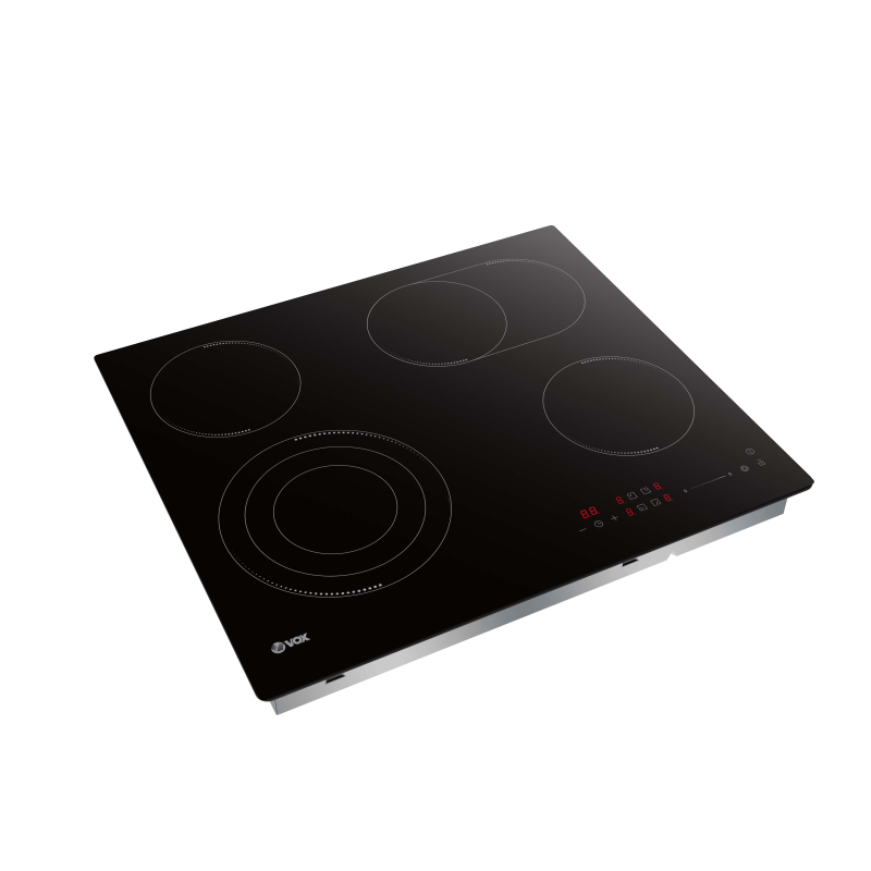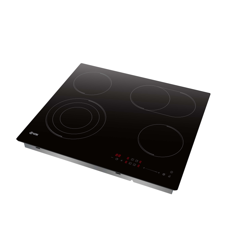 Vox vgradna plošča EBC425 je zasnovana za maksimalno prilagodljivost pri kuhanju. S štirimi kuhalnimi območji, vključno z razširjenimi dvojnimi in trojnimi radiacijskimi conami, omogoča uporabo različnih velikosti posod, od najmanjših loncev do največjih posod. SensoTouch drsni upravljalnik omogoča enostavno nastavitev temperature z 9 stopnjami moči, kar zagotavlja natančno kuhanje vsake jedi. Poleg tega funkcije, kot so otroška zaščita in avtomatski izklop pri pregrevanju, poskrbijo za varno uporabo v vsakem trenutku.