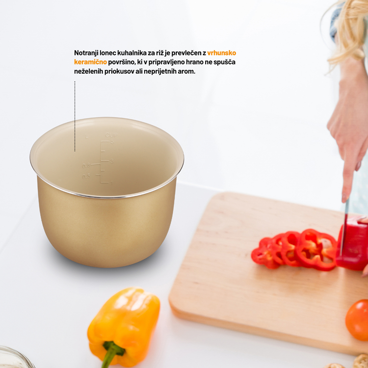 - Material notranjega lonca: Keramična neprijemljiva površina