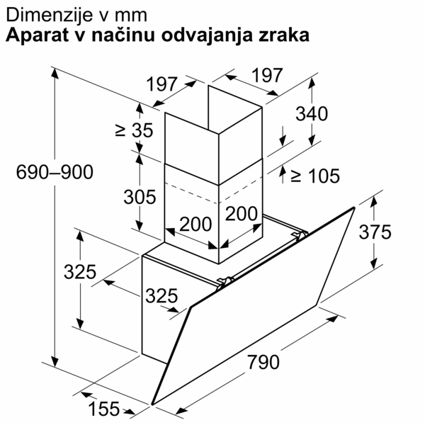 - Maks. zmogljivost pri odzračevanju: 550 m3/h