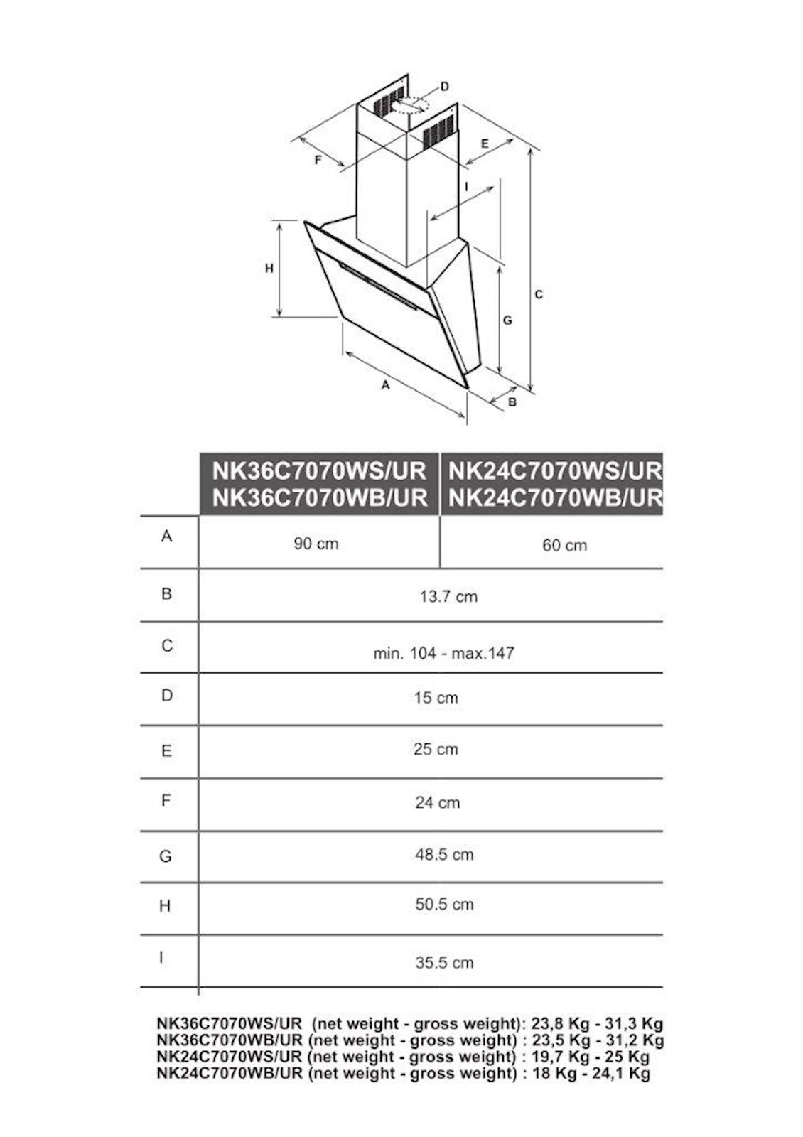 Kuhinjska napa Samsung 60 cm NK24C7070WB/UR - Kuhinjska napa Samsung 60 cm NK24C7070WB/UR - ecom
