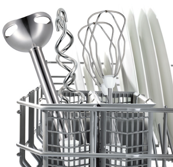 - Vključena oprema: 1 x Pokrov 1 x Mešalni lonček z merilno skalo 1 x Mešalna noga, nerjaveče jeklo 2 x Turbo metlica 2 x Metlica za gnetenje, nerjaveče jeklo