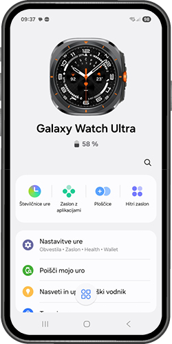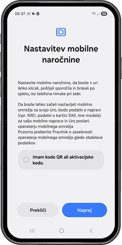 Na svojem telefonu odpri aplikacijo Galaxy Wearable in izberi Nastavitve ure -> Mobilne naročnine.