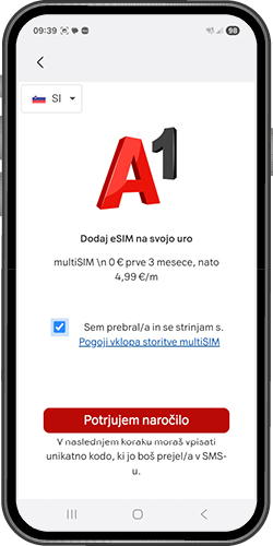 Po strinjanju s splošnimi pogoji, potrdiš vklop storitve multiSIM in tapneš na gumb Potrjujem naročilo.