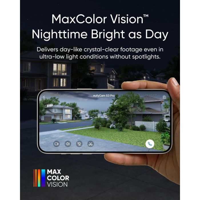 Uživajte v brezskrbni varnosti s sistemom, ki zagotavlja izjemno jasnost posnetkov, ne glede na svetlobne pogoje. S pomočjo 4K kamere in napredne tehnologije MaxColor Vision™ lahko zajamete podrobne posnetke, ki so primerljivi z dnevno svetlobo, tudi v zelo nizkih svetlobnih pogojih. Ta sistem je zasnovan za tiste, ki želijo vrhunsko kakovost in zanesljivost pri varovanju svojega doma. Poleg tega omogoča prilagodljive možnosti montaže in je združljiv z različnimi glasovnimi asistenti, kar omogoča enostavno integracijo v vaš pametni dom.