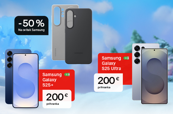 Posebna ponudba velja v obdobju od 22. 1. 2026 do vključno 22. 02. 2026 oz. do razprodaje zaloge in vključuje 25 EUR popusta na SAMSUNG GALAXY S25+ SILICONE BLACK in 35 EUR popusta na SAMSUNG GALAXY S25 ULTRA STANDING GRIP GRAY. Uporabnik ob takojšnjem plačilu prejme še dodatnih 10% popusta na akcijsko ceno izbrane naprave. Vrednost prihranka, prikazane pri posameznem izdelku predstavlja razliko med redno ceno izdelka, ter akcijsko ceno znižano za 10% popusta v primeru enkratnega plačila. Do ponudbe so upravičeni vsi naročniki A1, ki v času trajanja ponudbe sklenejo Pogodbo o nakupu opreme na obroke. Če je cena naprave do 50 EUR, je možen nakup le ob takojšnjem plačilu. Za naprave nad 40,01 EUR, je možno tudi obročno plačilo, pri čimer je razpoložljivo število obrokov razvidno pri posamezni napravi, objavljeno na https://www.a1.si/nakupovalnica. Vsi obroki, tudi prvi, se obračunajo na A1 računih. Popusti ne morejo biti izplačani v gotovini ali se prenesti na tretjo osebo ter niso združljivi z ostalimi popusti in akcijami. A1 Slovenija si pridržuje pravico do spremembe pogojev za odobritev nakupa opreme na obroke, cen opreme in ponudbe. A1 Slovenija si nadalje pridržuje pravico, da ob naročilu opreme od naročnika zahteva instrument zavarovanja plačila ali druge dokumente, iz katerih je razvidna plačilna zgodovina naročnika. Pogodbo o nakupu opreme je možno skleniti na kateremkoli prodajnem mestu A1, v spletni trgovini A1, prek telefonske prodaje ali prek prodaje zunaj poslovnih prostorov. Pogodba o nakupu opreme je sklenjena in velja, ko jo podpiše zadnja izmed pogodbenih strank in ko jo prejme zadnja izmed pogodbenih strank. Cene opreme so v EUR in vključujejo DDV. Cene veljajo v trenutku oddaje naročnikovega naročila. Pridržujemo si možnost napak pri tehničnih specifikacijah in opisu.
