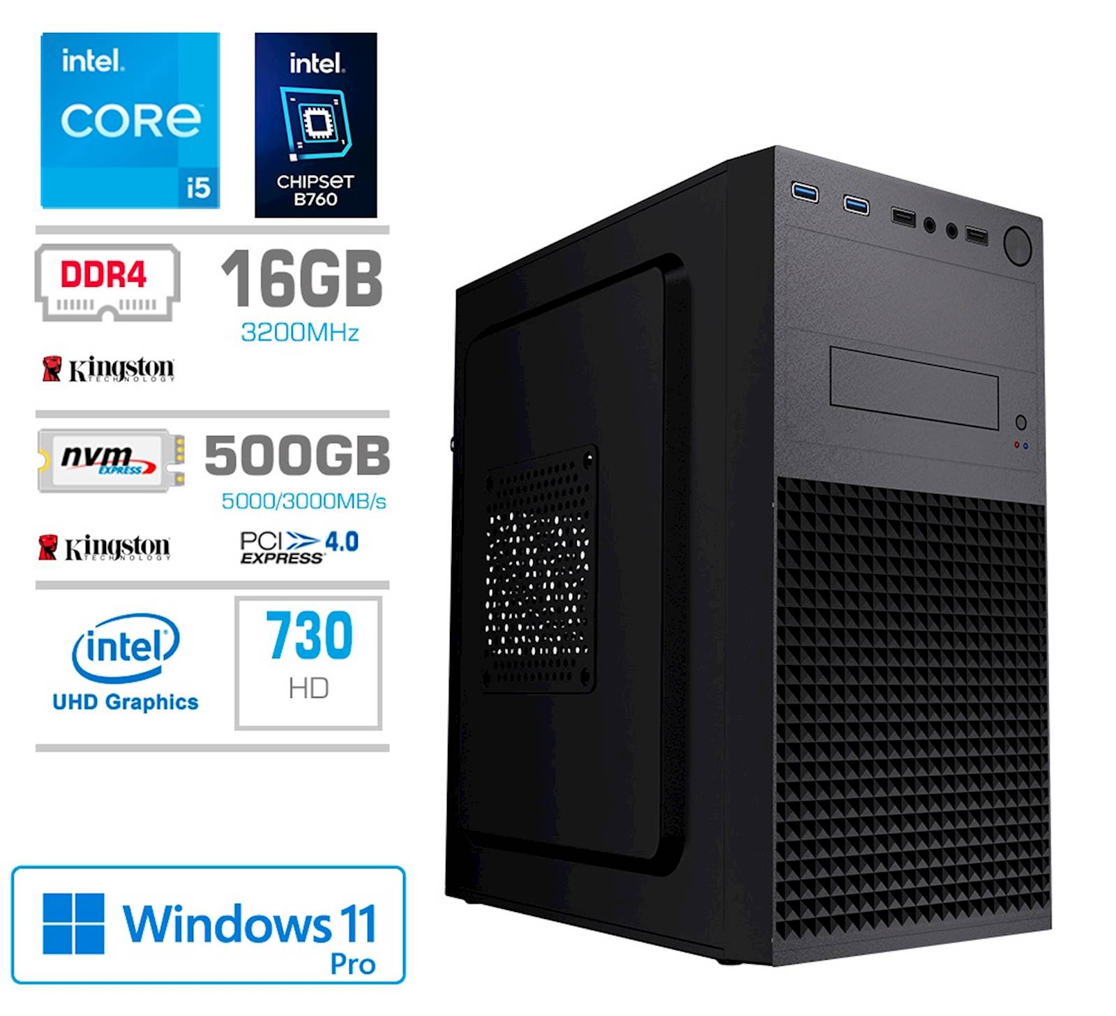 Računalnik PCX-GS4-617747 je zasnovan za uporabnike, ki potrebujejo zanesljivo in hitro delovanje. Opremljen je z najnovejšim operacijskim sistemom Windows 11 Pro, ki omogoča enostavno upravljanje in varnost vaših podatkov. Z 500GB NVMe SSD diskom zagotavlja hitro nalaganje aplikacij in datotek, kar je idealno za poslovne uporabnike in domače računalniške entuziaste. Njegovo kompaktno ohišje Mini stolp omogoča enostavno postavitev v vsak prostor, medtem ko napajalnik moči 450W zagotavlja stabilno delovanje. Računalnik je odlična izbira za tiste, ki iščejo zmogljivost in zanesljivost.