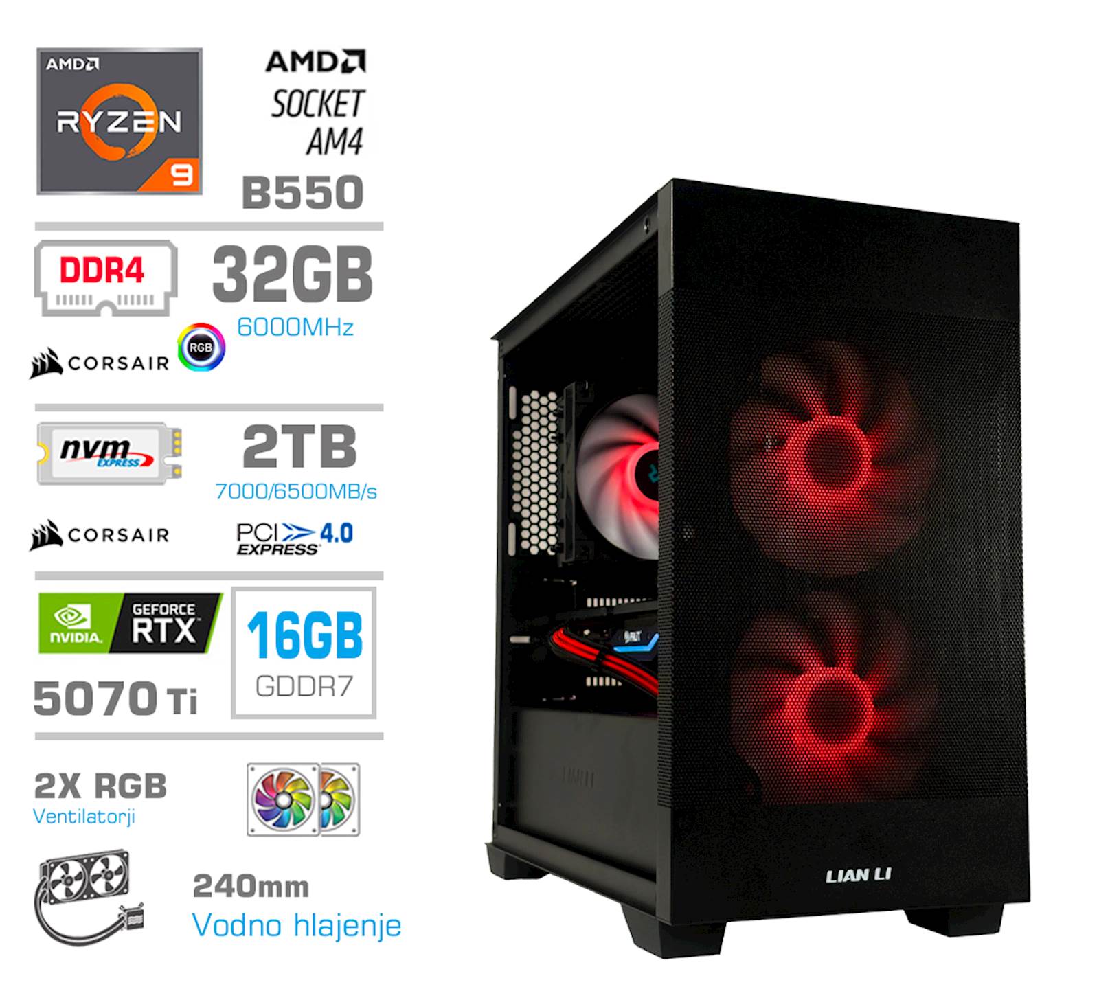 PCX računalnik PCX-GS7X-617419 AMD Ryzen 9 NVIDIA GeForce RTX 5070 Ti 32GB
