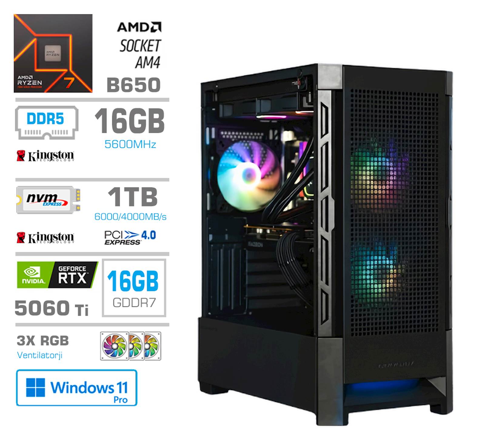 PCX računalnik PCX-GS8-618133 AMD Ryzen 7 NVIDIA GeForce RTX 5060 Ti 16GB - PCX računalnik PCX-GS8-618133 AMD Ryzen 7 NVIDIA GeForce RTX 5060 Ti 16GB - ecom