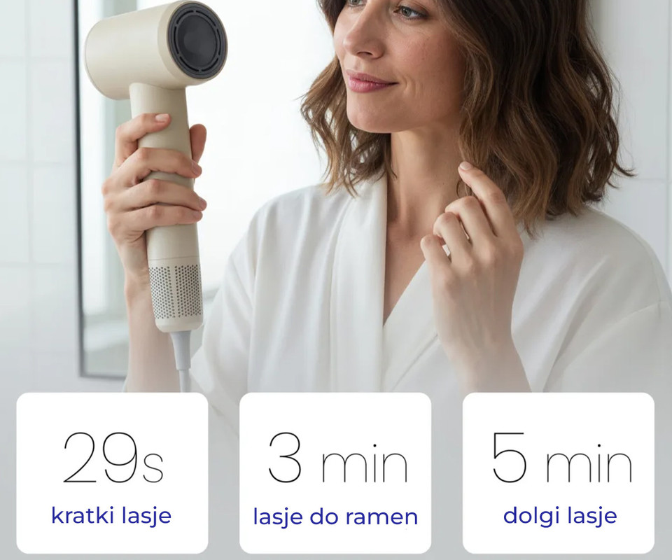 Odkrijte izjemno moč in učinkovitost sušilnika za lase, ki poskrbi za hitro in nežno sušenje vaših las. Z močjo 1600 W in naprednim BLDC motorjem, ki doseže hitrost 110.000 vrt/min, boste svoje lase posušili v samo treh minutah. Ta sušilnik omogoča prilagoditev pretoka zraka z dvema hitrostma in štirimi načini sušenja, kar zagotavlja optimalne rezultate za vse tipe las. Poleg tega nastavljiva temperatura omogoča popoln nadzor nad toploto, kar preprečuje pregrevanje in ohranja vlago v laseh.