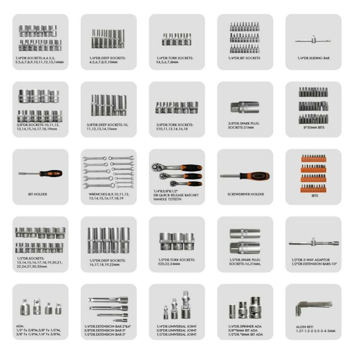 Ne glede na to, ali gre za popravilo avtomobila, motornega kolesa ali kolesa, ta garnitura orodja ponuja vse, kar potrebujete za učinkovito delo. Orodja so zasnovana za privijanje in odvijanje matic ter so primerna za različne vrste popravil in vzdrževanja. Komplet je kot nalašč za samostojno uporabo, hobi mehaniko ali vzdrževanje gospodinjstva, saj združuje kakovost, trpežnost in praktičnost v enem. Z več kot sto kromiranimi vanadijimi nastavki je ta garnitura popolna izbira za vse, ki iščejo zanesljivo in vsestransko rešitev za svoje potrebe.