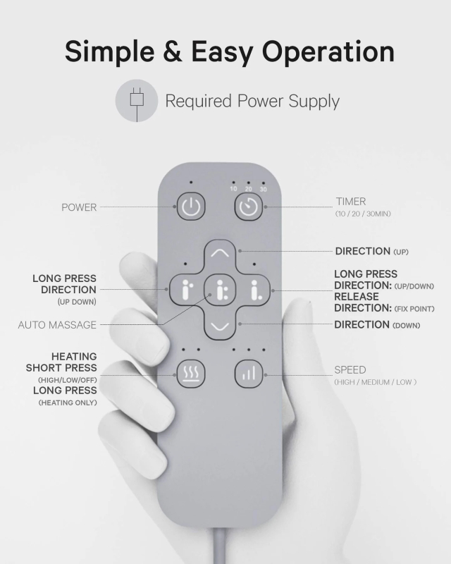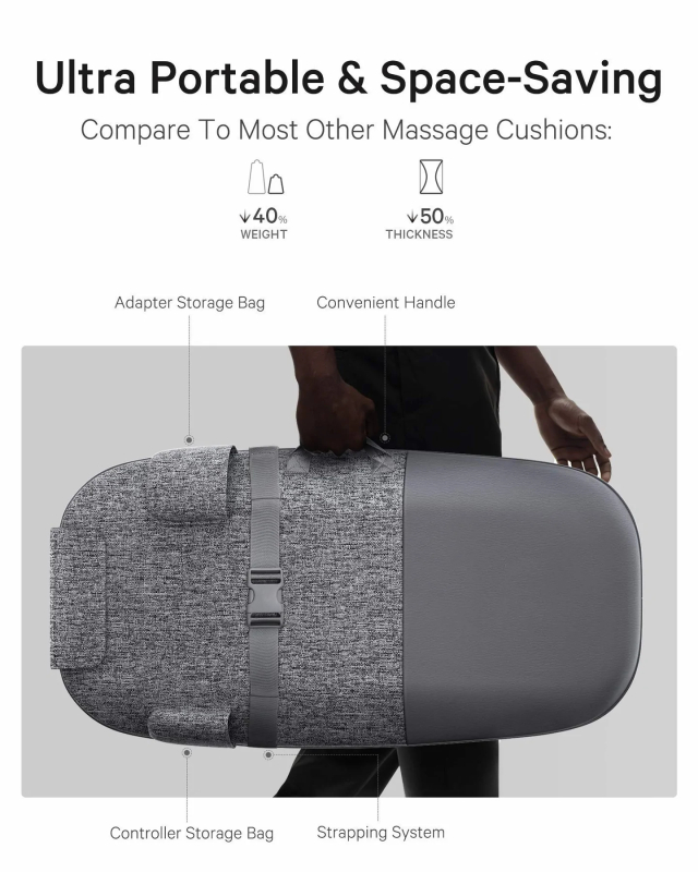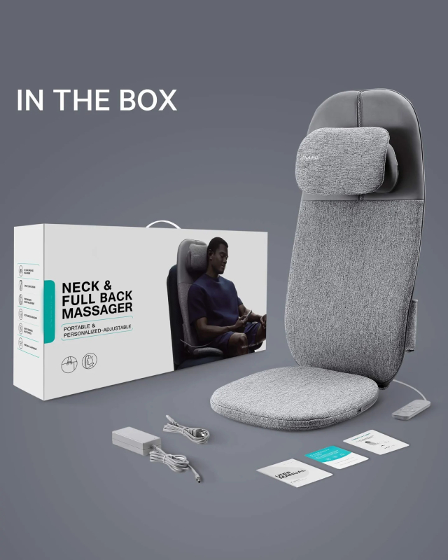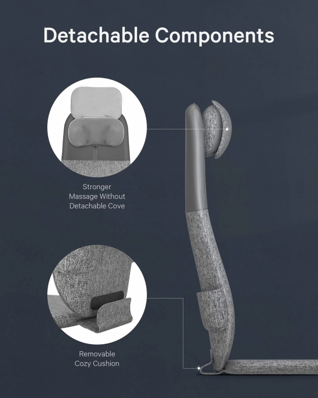 Naipo Shiatsu masažna naprava oCuzen-S1 - Izkušnja masaže celotnega hrbta: Masažni sedež to zagotavlja z masažnimi vozlišči, ki potekajo po obrisih vratu, ramen in celotnega hrbta ter tako posnemajo masažo, ki se izvaja na hrbtu, izkušnjo shiatsu masaže z gnetenjem. Ergonomska zasnova, ki zmanjšuje obremenitev hrbtenice in podpira ledveni del. - Nastavljiv masažni aparat za vrat, primeren za različne višine: 3D mehanizem za dvojno masažo in funkcija za nastavitev višine zagotavljata udobje za različne višine. Nastavite vzglavnik in uživajte v globoki in udobni masaži ne glede na to, kako visoki ste in na kateri del glave se želite osredotočiti. - Shiatsu masažna naprava za hrbet in vrat z ogrevanjem: infrardeče ogrevanje tehnologija omogoča, da se blazina segreje na konstantno temperaturo ±45 stopinj Celzija. Uživajte v masaži z ogrevanjem ali samo v gretju med mrzlimi dnevi. - Priročno upravljanje nastavitev: Dostopajte do vseh nastavitev masaže funkcij z gumbi na krmilniku in poiščite nastavitev, ki je popolnoma prilagojena vašim potrebam. Nastavitev najljubšega načina masaže s preprostim upravljanjem. - Prostorsko varčen, prenosen in enostaven za pritrditev na vaš najljubši stol: Prenosen in lahek, zato ga lahko vzamete s seboj kamor koli in si privoščite masažo celotnega hrbta, opremljen pa je tudi s priročnim sistemom za pritrjevanje. Enostavno ga pritrdite na pisarniški, računalniški ali domači stol.