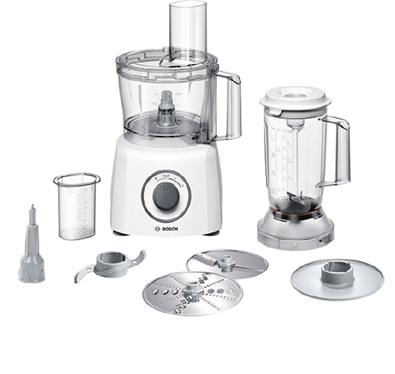 Običajno potrebujete pri kuhanju in peki več aparatov. Naj gre za sekljanje čebule ali sadja, ribanje zelenjave ali mešanje smoothiejev – po zaslugi široke palete dodatnega pribora, kot so univerzalni nož iz nerjavečega jekla, nož MultiLevel6 in drugi nastavki, boste lahko jedi pripravili zelo hitro.