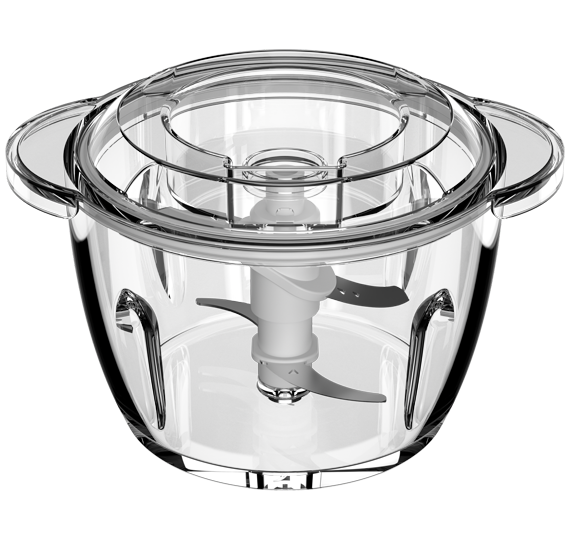 Opremljen je s trpežno 1-litrsko stekleno posodo, graduirano za natančne meritve. Z njim je enostavno sekljati in mešati zelišča, oreščke, sir ali pripravljati otroško hrano.