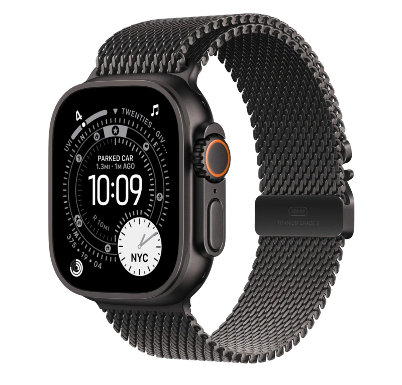 Pametna ura Apple Watch Ultra 3, 49mm, Titan črna, cellular LTE, black milanese pašček - velikost L