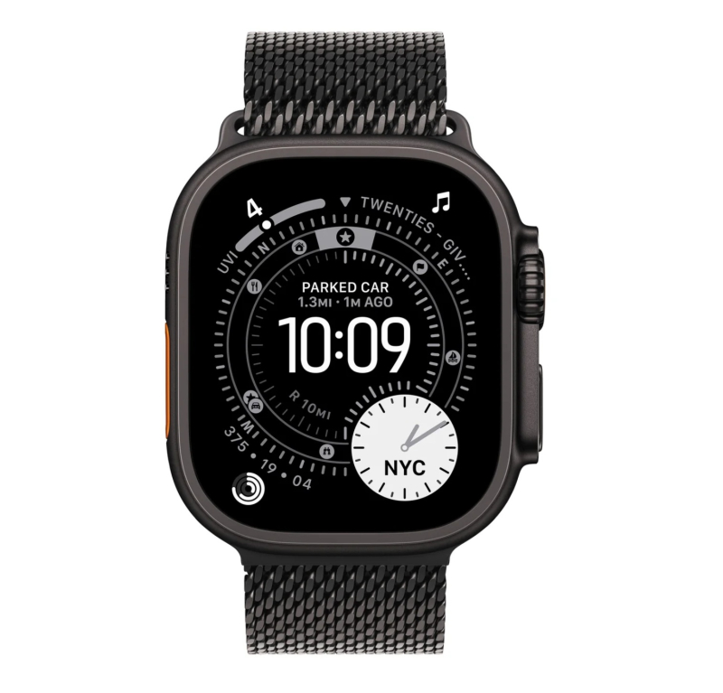 Pametna ura Apple Watch Ultra 3, 49mm, Titan črna, cellular LTE, black milanese pašček - velikost S