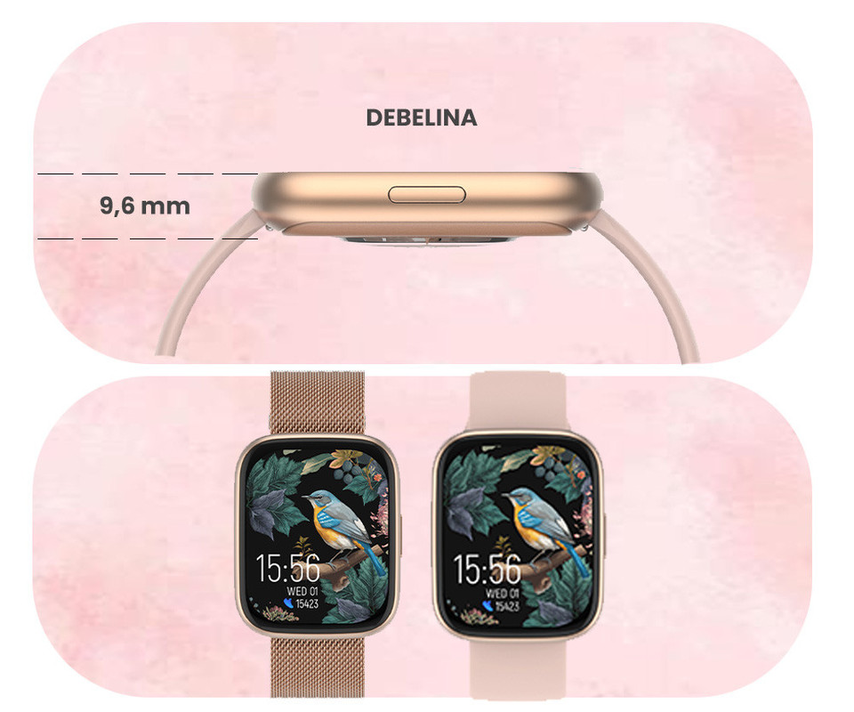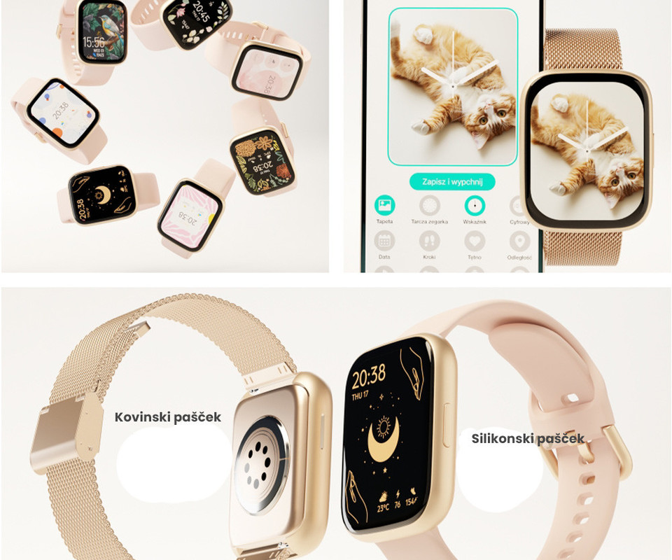 Odkrijte pametno uro, ki združuje eleganco in funkcionalnost v eni napravi. Z velikim 1,95-palčnim AMOLED zaslonom na dotik, vam omogoča jasen prikaz v vseh svetlobnih pogojih. Ura je zasnovana za sodobno žensko, ki želi spremljati svoje zdravje in aktivnosti. Z več kot 100 športnimi načini, menstrualnim koledarjem in analizo spanca, je idealna za vsakodnevno uporabo. Vodoodpornost IP68 zagotavlja, da je ura pripravljena na vse izzive, ne glede na vremenske razmere. Poleg tega, priložena dva paščka omogočata prilagoditev vašemu stilu.