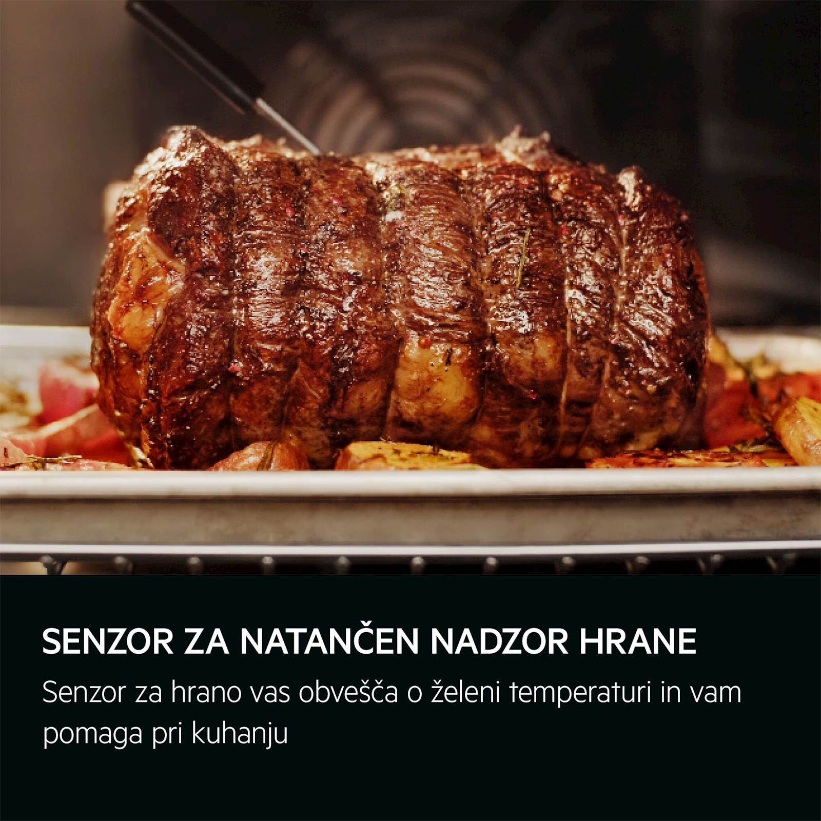 Vgradna pečica AEG TE7PB63ZAB je zasnovana za tiste, ki si želijo vrhunske rezultate pri kuhanju. S sondo za hrano omogoča natančen nadzor nad temperaturo jedi, kar zagotavlja popolne rezultate ne glede na recept. Pečica vas samodejno obvesti, ko hrana doseže pravo temperaturo, kar vam omogoča brezskrbno kuhanje. Poleg tega je opremljena z odzivnim prikazovalnikom na dotik TFT, ki omogoča intuitiven dostop do različnih funkcij. Z neposrednimi povratnimi informacijami vam zagotavlja popoln nadzor nad recepti, kar je idealno za vse ljubitelje kuhanja.