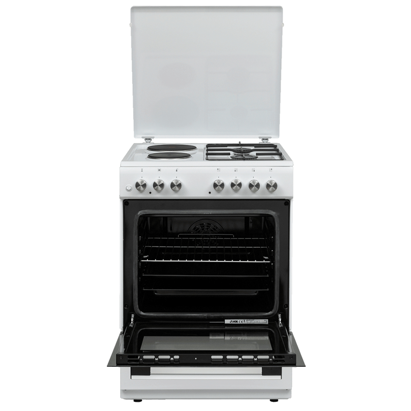 Ta štedilnik je idealna izbira za vse, ki iščejo kombinacijo plinskih in električnih kuhalnih plošč. Z dvema plinskima gorilnikoma in dvema električnima grelnima ploščama omogoča raznoliko pripravo jedi. Ventilatorska pečica s prostornino 65 litrov zagotavlja enakomerno pečenje, kar je kot nalašč za večje količine hrane. Njegova gladka površina iz emajla in stekla omogoča enostavno čiščenje, kar je dodatna prednost za vsakodnevno uporabo. Poleg tega je umeščen v energijski razred A, kar pomeni, da je tudi energetsko učinkovit.