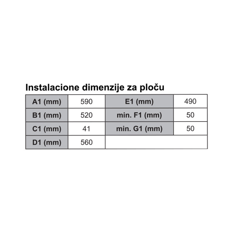 - Dimenzije kuhalne plošče: 41 x 590 x 520 mm