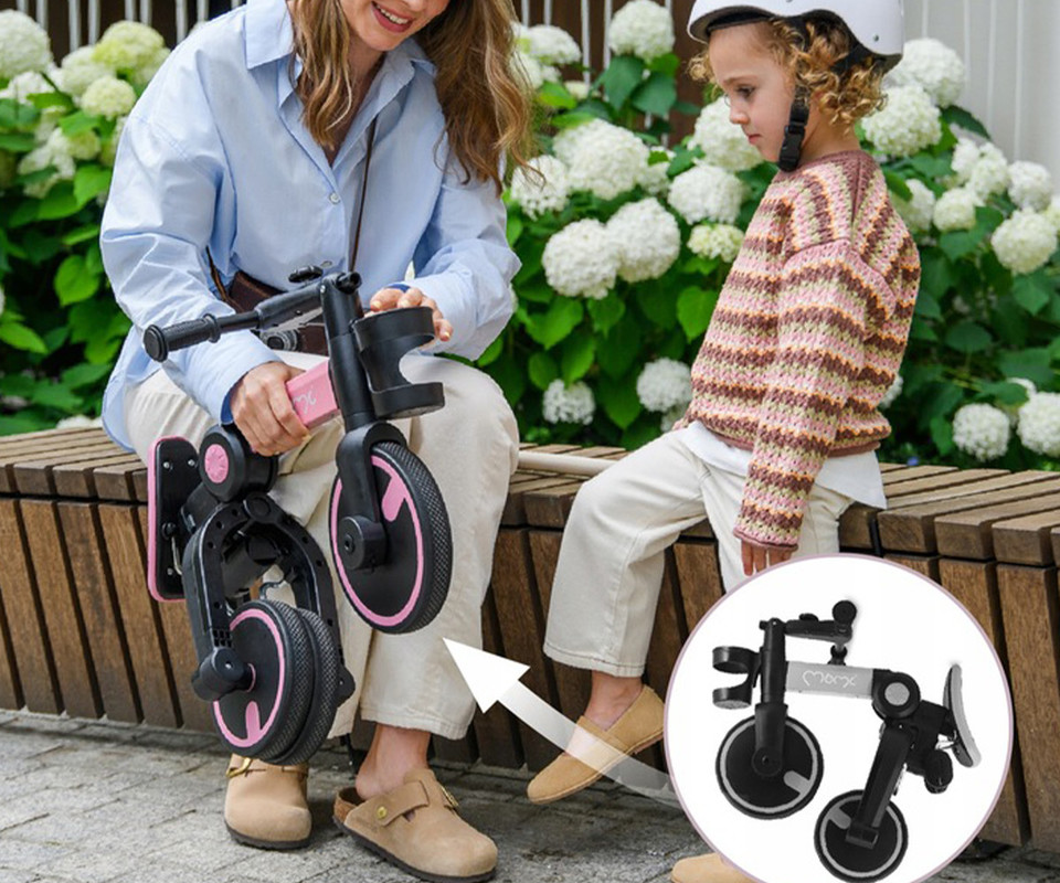 MOMI otroški poganjalec FILO 3v1 omogoča hitro in enostavno prilagoditev brez uporabe orodja. Z nekaj preprostimi potezami lahko spremenite funkcijo kolesa, da ustreza trenutnim potrebam vašega otroka. Ta funkcionalnost je idealna za starše, ki iščejo praktične rešitve za vsakodnevne izzive. MOMI otroški poganjalec FILO 3v1 je opremljen z zložljivim okvirjem in krmilom, kar omogoča enostavno shranjevanje in prevoz. Zahvaljujoč temu se bo kolo zlahka prilegalo v prtljažnik avtomobila ali omaro, kar je posebej priročno za izlete ali počitnice.